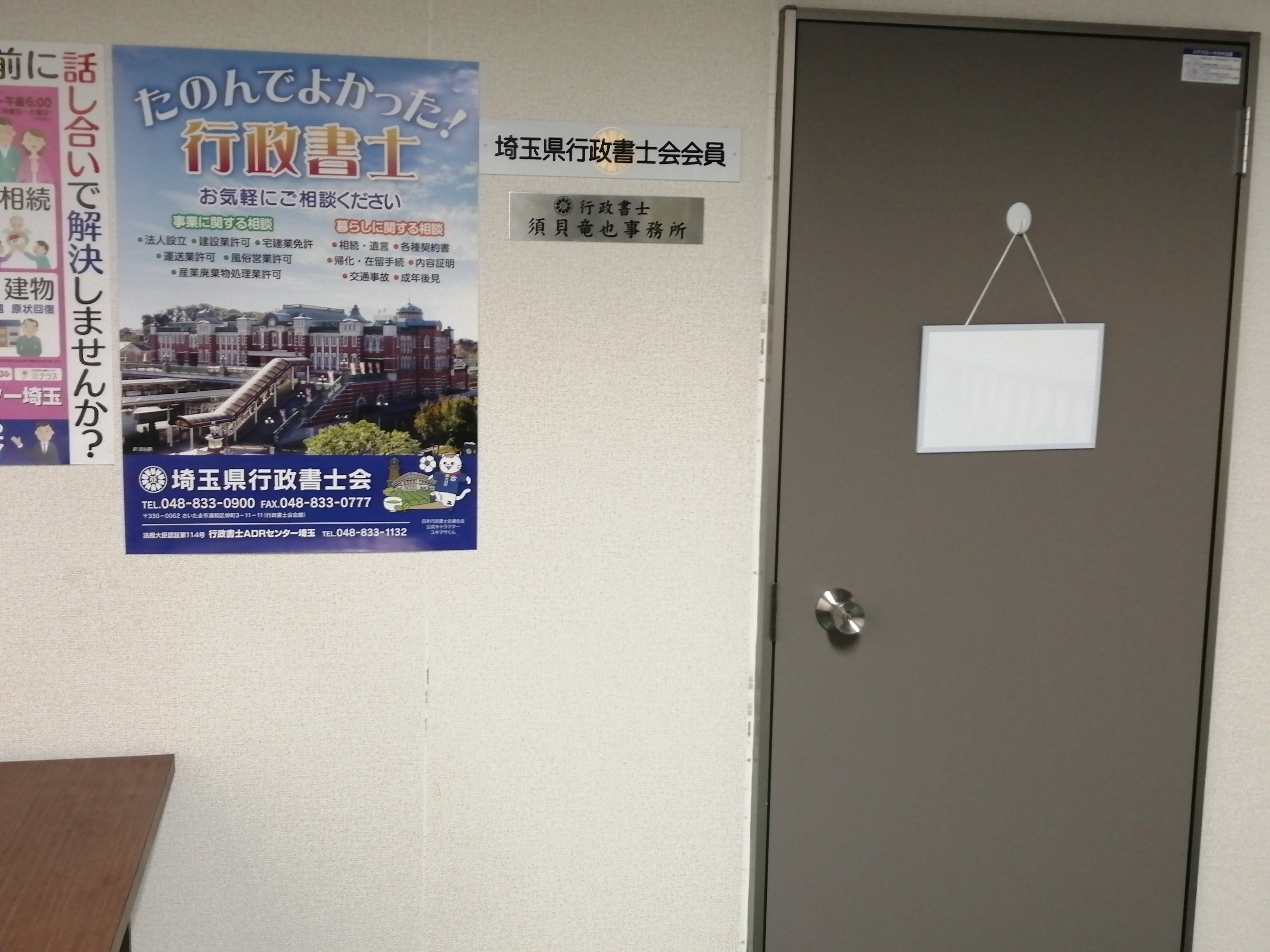 事務所概要 ヤマト駐輪場の階段を2階に上がって右に事務所があります。 行政書士須貝竜也事務所 代表者 須貝竜也 所在地 埼玉県川口市並木3-9-18 第2ヤマトビル2階 TEL/FAX 048-919-2808
